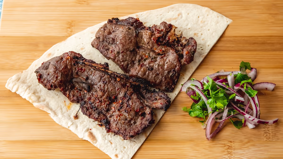 Dana əti,duz,istiot,yağ,soğan,limon