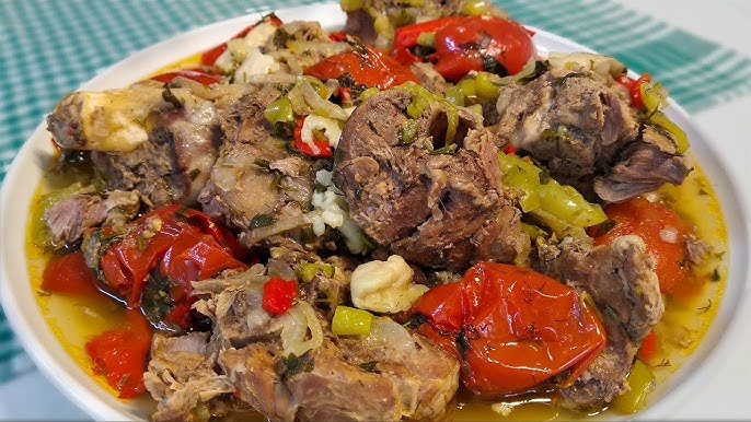 Quzu əti,quyruq,pomidor,bibər,soğan,duz, istiot,su