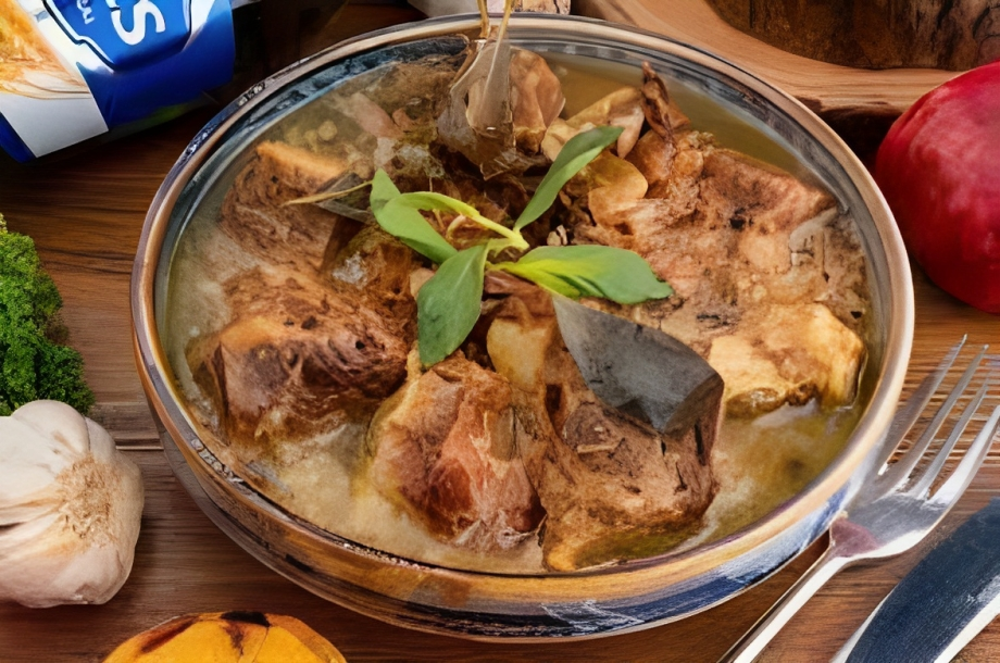 Qoyun əti,quyruq,noxud,duz,istiot,zəfəran, sarıkök,su