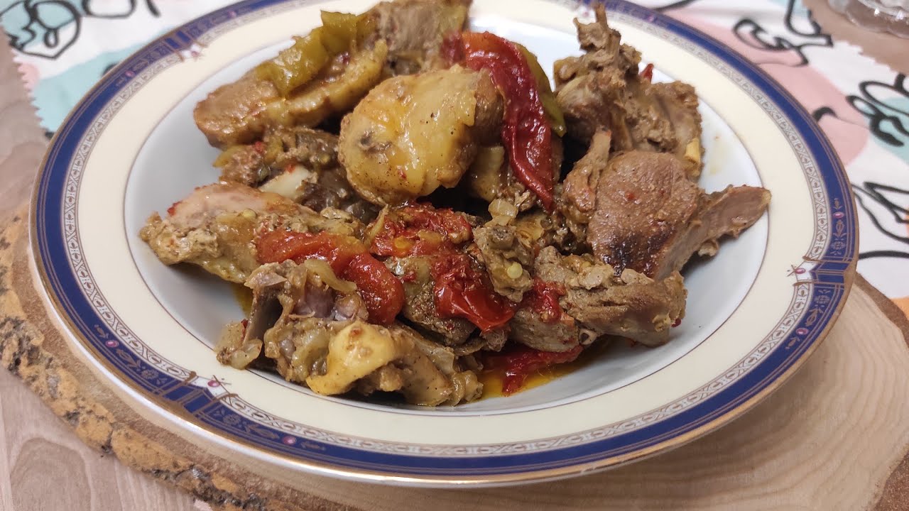 Toyuq əti,kartof,soğan,tomat,yağ,duz,istiot, su