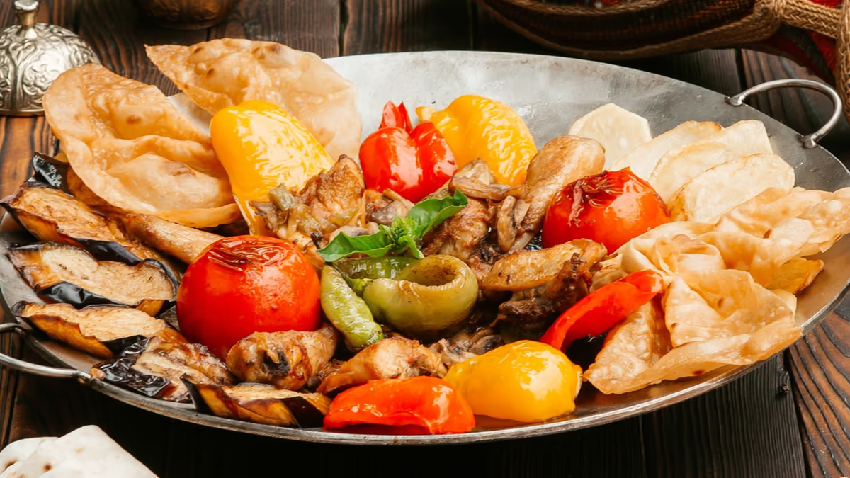 Çolpa,badımcan,bibər,kartof,göbələk, suxarı,duz,istiot,pomidor,yağ